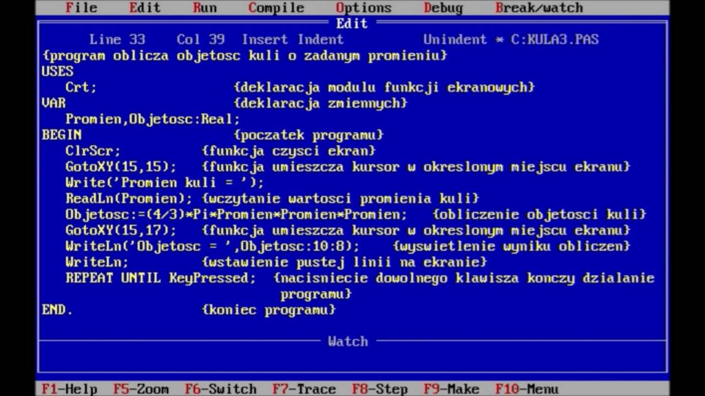 Thanks to the popularity of the CP/M system that could be shared by almost anything that was built with the Z80 CPU, any computer that could run it (Amstrad CPC, Spectrum +3, C128, Apple II with a Z80 card, MSX, IBM, Sam Coupe, TRS-80, and many others), could also run the most popular version of this language – Turbo Pascal by Borland (most known from the later editions for the IBM PC compatibles).