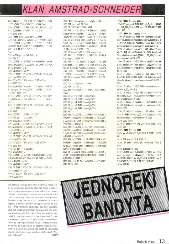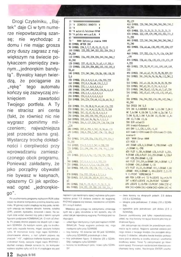 The best proof of how much of the educational and fun value you can create in BASIC is the popularity of type-in programs and games in these decades. Having so many home computers readily booting into a simple programming language command line and interpreter made it possible to popularize simple coding. Computer magazines popular at the time, like Byte in the US and it’s smaller cousin Bajtek in Poland (we’d need to confirm this, but since “Bajtek” – pronounced byte-æk is – means a “cute little byte”, so it’s a perfect reference both to computing, and to the American magazine), printed so-called “type-in programs”, meaning you could literally type them in straight from the magazine into your computer, in reasonable time, and have some fun with it!